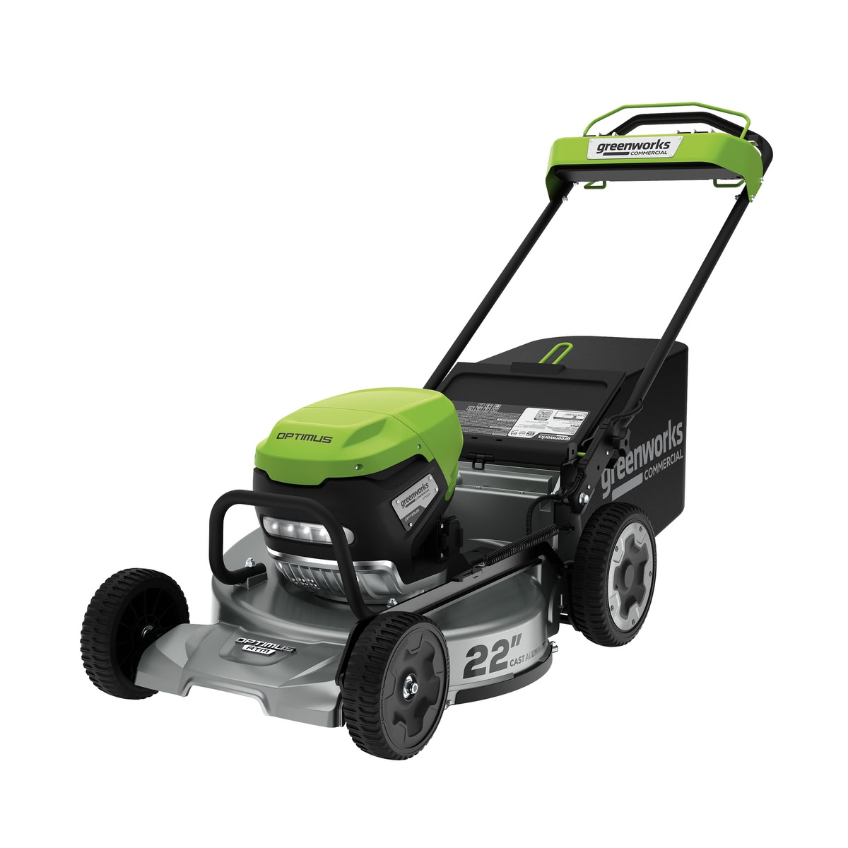 Greenworks OPTIMUS ATM22 82V 22″ self-propelled mower with heavy-duty alloy deck. Commercial-grade build quality for professional lawn maintenance. Battery and charger sold separately.
