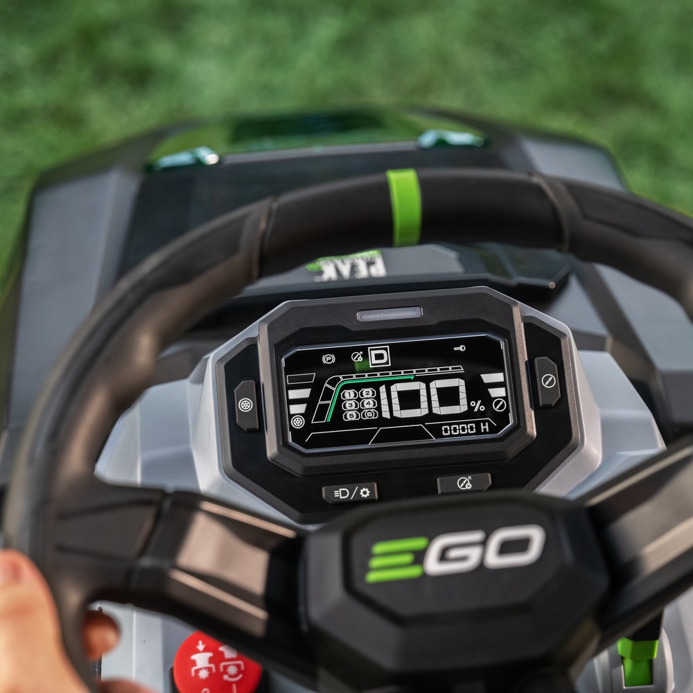 The EGO POWER+ T6 Ride-On Mower brings the convenience of battery power to ride-on mowing with steering wheel control that feels familiar from the moment you sit down. The 107 cm (42″) stamped steel deck handles medium to large residential properties efficiently while four 10.0Ah batteries from EGO’s 56V platform deliver consistent power throughout your mowing session.