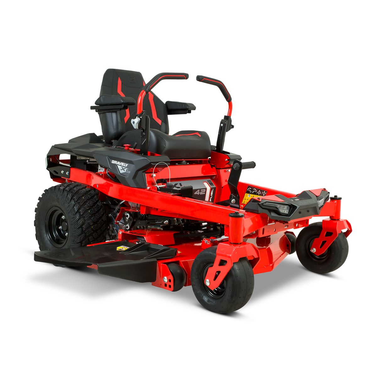The Gravely ZT XL 42″ treats residential properties like a pro. Upgraded Hydro-Gear ZT-2800 transaxles deliver smoother operation and increased torque, while the isolated seat and padded armrests keep you comfortable through longer mowing sessions. It’s a residential mower with the heart and soul of a commercial machine.