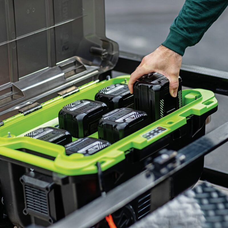 The Greenworks OPTIMUS CHD1300 is a rapid 16A dual port charger that gets your 82V batteries back to full charge fast. Charges both standard and CORE batteries simultaneously. Essential for busy crews running multiple tools – minimise downtime and keep everyone working. Compatible with all Greenworks 82V batteries.