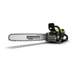 Greenworks OPTIMUS OCS800 82V 5.0kW chainsaw power head only. The most powerful chainsaw in the 82V range. Accepts 20″ and 24″ bars with D009 mount. Battery, charger, bar and chain sold separately.