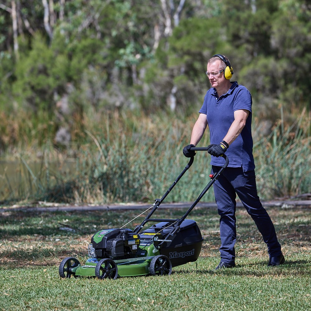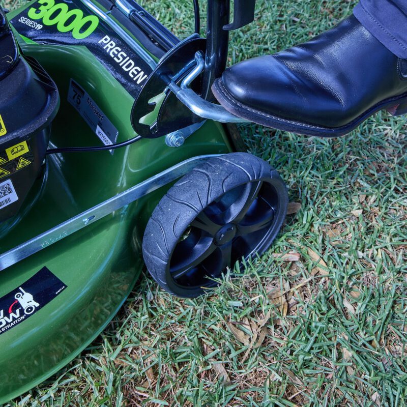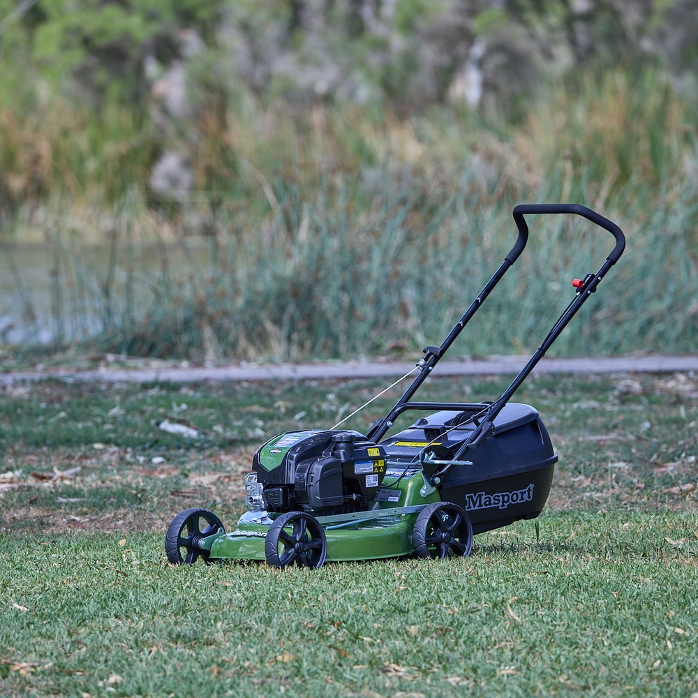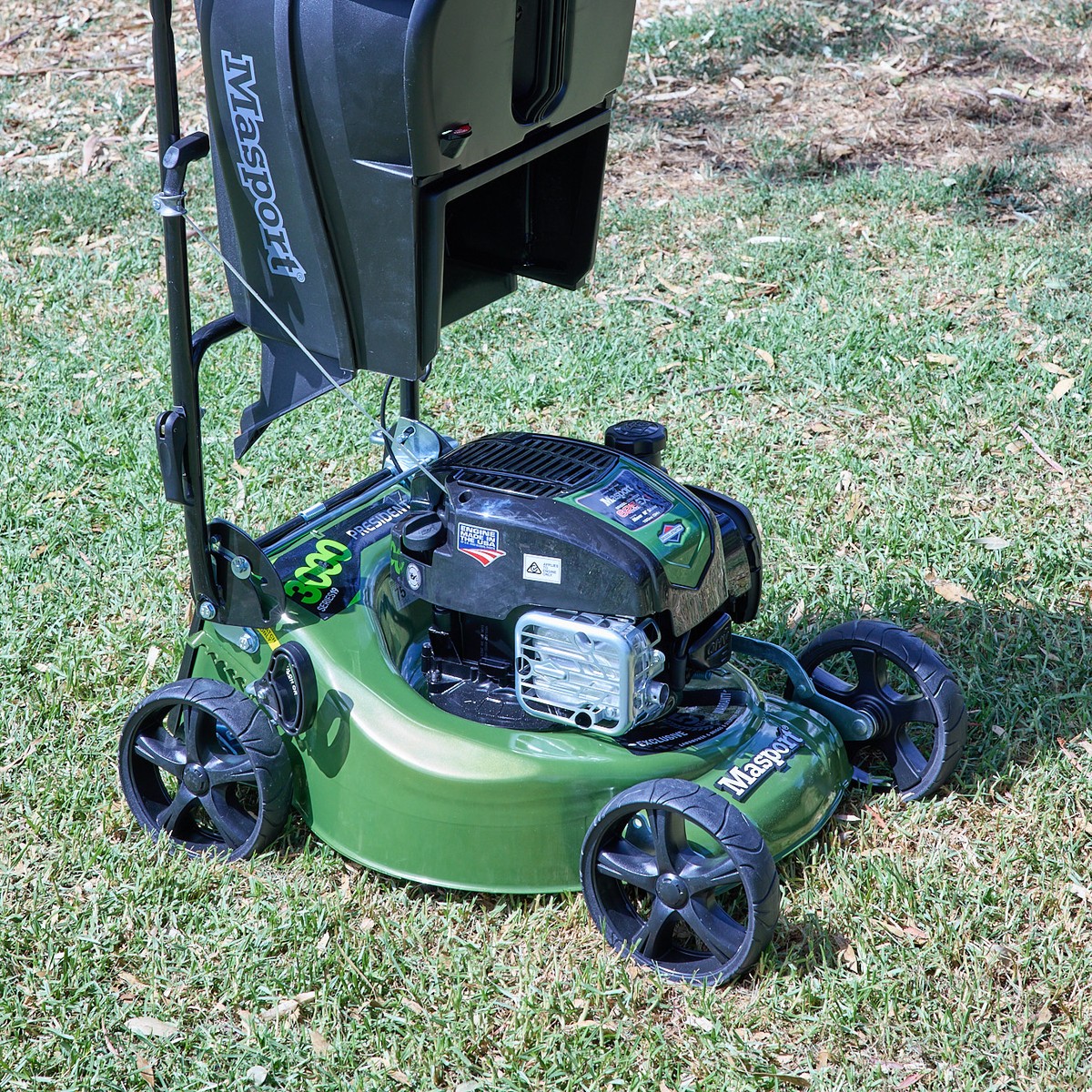 The Masport President 3000 ST S19 Combo combines proven features with Handle Lift convenience. Powered by a Briggs & Stratton 150 cc Series 625EXi engine with ReadyStart delivering 8.5 Nm of torque, this 485 mm heavy-duty steel chassis mower features the Quadcut 4-blade system for excellent catching and mulching. The Dual Mowzone extends blade coverage beyond the wheels for cleaner cuts near obstacles, while the Handle Lift System allows quick catcher access without bending. With 11-position height adjustment (6 mm to 73 mm), Zone Start cord positioning to reduce back strain, and a 42 L HDPE catcher (lifetime warranty), this mower includes practical features for comfortable mowing. The soft-grip handle, MSV Mag 200 mm wheels with adjustable dual bearings, and Masport’s 5-year comprehensive warranty make this a solid choice for medium to large lawns.